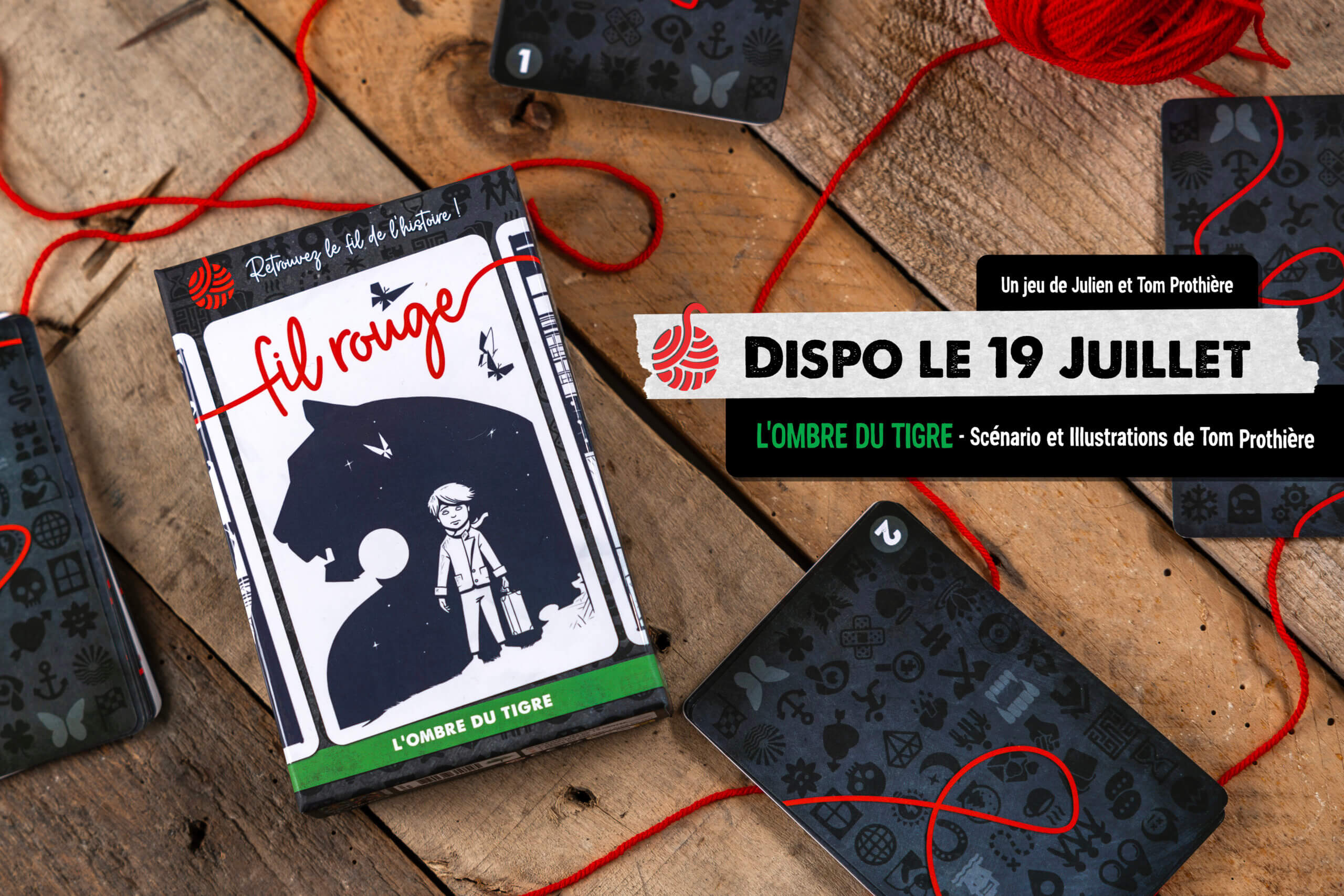 Fil rouge est une gamme de jeux coopératifs et narratifs de Julien et Tom Prothière dont le premier opus, en 4 chapitres, L’Ombre du Tigre, est illustré par Tom Prothière.